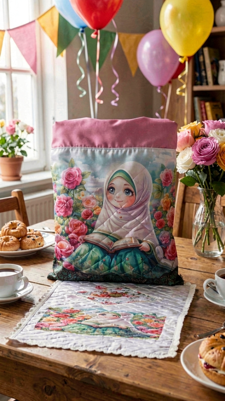 Satin folding bag and janmaz with sleeved veil for the graduation ceremonyحقیبة قابلة للطی من الساتان ووشاح بأکمام لحفل التخرج،